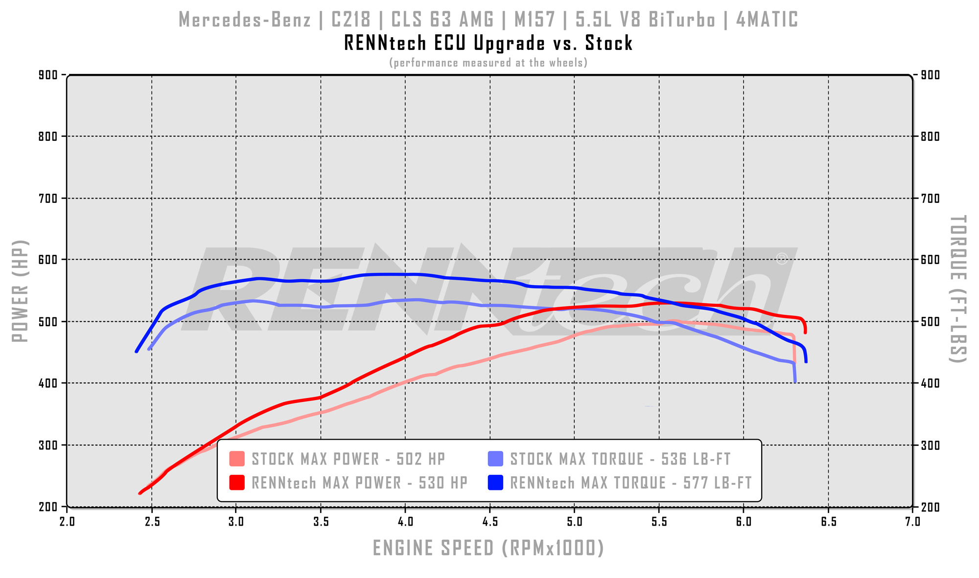 - Power gains are calculated based on stock numbers measured by RENNtech. Crank Performance Numbers are calculated with a 17% Drivetrain loss on 4MATIC vehicles.